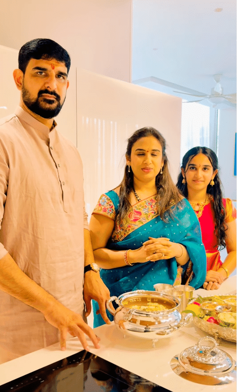 ushik reddy with his daughter and wife